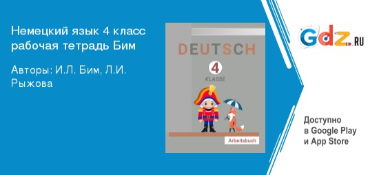 В последнее время все больше требуются специалисты со знанием иностранных языков. Поэтому школьная программа предусматривает углубленное изучение немецкого, начиная с младших классов. Четвероклассники очень загружены большим количеством предметов, и времени на качественную подготовку катастрофически не хватает. А ведь так хочется побегать и попрыгать, поплавать наперегонки в бассейне, поиграть в компьютерные игры, да и просто погулять со сверстниками. Дабы облегчить участь учащихся, издатели подготовили ГДЗ по немецкому языку 4 класс рабочая тетрадь автора Бим. Теперь ребята имеют возможность: