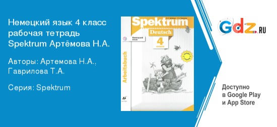 ГДЗ к рабочей тетради по немецкому языку 4 класс Spektrum Артёмова Н.А. станет отличным помощником для учеников. Это позволит ученикам быстрее и проще выполнять задания в рабочей тетради, что повысит их успеваемость и поможет им лучше подготовиться к контрольным работам. Пособие полностью соответствует всем требованиям федерального государственного образовательного стандарта и учебной программы начального общего образования.