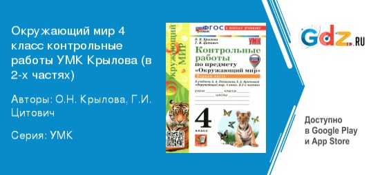 Почему стоит выбрать для обучения ГДЗ Контрольные работы по окружающему миру за 4 класс Крылова, Цитович ФГОС часть 1, 2