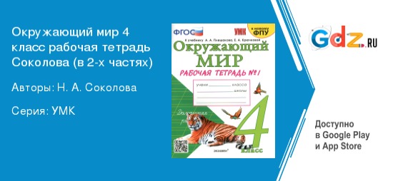 Попробуйте готовые домашние задания по окружающему миру 4 класс рабочая тетрадь автора: Соколова, Н. А. Мы уверяем вас, что подобного вы еще не пробовали. Как только вы начнете пользоваться нашей книжкой, то сразу увидите стойкий положительный результат!