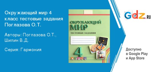 Тестовые задания являются важным элементом контроля и оценки знаний учащихся младших классов. Они позволяют учителю определить степень усвоения учениками программного материала, выявить проблемные моменты и скорректировать дальнейшую программу обучения. Автор тестов О.Т. Поглазова разработала специальную серию пособий, ориентированных на проверку знаний детей младшего школьного возраста по курсу «Окружающий мир». ГДЗ к тестовым заданиям по Окружающему миру 4 класс Поглазовой О.Т. – это ценный помощник в процессе обучения, облегчающий жизнь и учащемуся, и родителю, и педагогу. Грамотное использование ГДЗ способствует повышению качества образовательных достижений, формирует привычку к дисциплинированному труду и развивает критическое мышление у обучающихся. Пособие полностью соответствует всем требованиям федерального государственного образовательного стандарта начального общего образования.