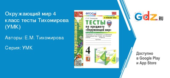 ГДЗ к тестам по окружающему миру 4 класс Тихомировой входит в состав учебно-методического комплекта (УМК) по окружающему миру для 4 класса, автором которого является Тихомирова Е.М. Учебно-методический комплект (УМК) – это набор учебных материалов, которые используются в процессе обучения в школе. Он включает в себя учебник, рабочие тетради, тетради для самостоятельных и контрольных работ, методические рекомендации для учителя и другие материалы. ГДЗ к тестам по окружающему миру 4 класс Тихомировой является одним из компонентов этого комплекта. Он содержит ответы на все вопросы, которые могут быть заданы в тестах, и помогает ученикам лучше понять и запомнить материал. Использование ГДЗ к тестам по окружающему миру 4 класс Тихомировой может быть полезным для учеников, которые испытывают трудности с пониманием материала, а также для родителей, которые хотят помочь своим детям в учебе. Вот несколько преимуществ использования ГДЗ к тестам по окружающему миру 4 класс Тихомировой Е.М.: