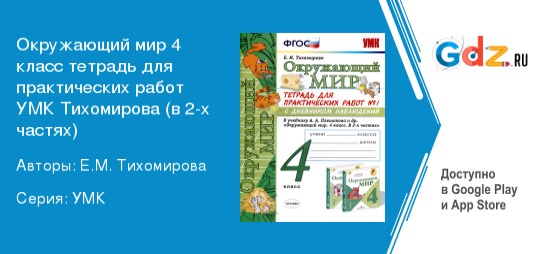 Описание ГДЗ по окружающему миру за 4 класс тетрадь для практических работ УМК Тихомирова (в 2-х частях)
