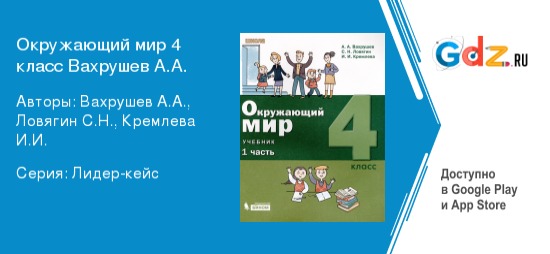 ГДЗ по окружающему миру 4 класс автор Вахрушев А.А. может пригодиться ученикам для проверки правильности выполнения домашних заданий, повторения материала или подготовки к контрольным работам. Пособие полностью соответствует всем требованиям федерального государственного образовательного стандарта основного общего образования и учебной программы начального общего образования.
