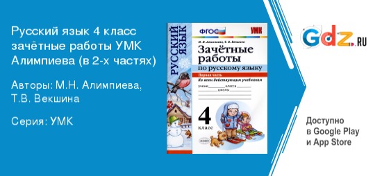 Конечно, стоит объяснить детям, что «ГДЗ по русскому языку 4 класс зачетные работы УМК М.Н. Алимпиева, Т.В. Векшина (в 2-х частях), (Экзамен)» - это не шпаргалка для списывания, а пособие для контроля своих знаний. Это своего рода справочник, который подстрахует в любой сложной ситуации. Решебник составлен в соответствии с требованиями ФГОС, полностью отражает упражнения учебной тетради, а также содержит верные ответы на все задания.