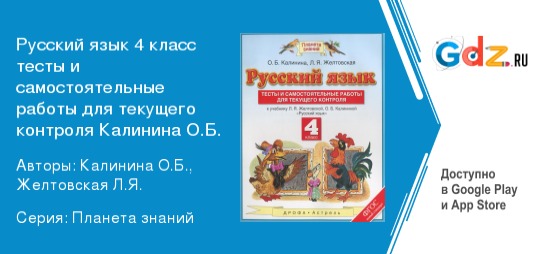 Последний год является самым сложным в младшей школе. И хотя в первом классе дети более растеряны и им тяжело привыкнуть к строгим правилам, в выпускном они уже вынуждены впервые столкнуться с настоящим экзаменом. При сдаче итоговой аттестации главным критерием успеха будет не умение ровно сидеть за партой, а знания, полученные за весь период обучения. Учеников четыре года готовили к этому событию. Преподаватели постоянно твердили им о том, что «нет времени на раскачку» и необходимо как можно скорее приступать к тренировкам, однако редкий ребенок изъявит желание сесть за уроки вместо того, чтобы поиграть с друзьями на улице. Как результат, многие четвероклассники оказываются не готовы к такому нерво- и энергозатратному мероприятию. К счастью, в эпоху интернета у любого школьника имеется возможность нагнать и даже перегнать программу. Спасение есть, и оно – в онлайн-решебниках! «ГДЗ к тестам и самостоятельным работам для текущего контроля по русскому языку для 4 класса Калинина» обеспечит вашему чаду высокую успеваемость и подготовит его к грядущей проверке.