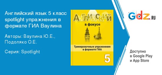 В пятом классе школьники начинают изучать несколько новых предметов, которых не было в программе начальной школы. На этом фоне, а также благодаря обновленным порядкам средней школы, английский язык как бы отходит на второй план. Это неправильно, поскольку в современном мире важность знаний этого предмета прекрасно понимают все. Очень правильно в данной ситуации сохранить успеваемость на должном уровне. Это задача как самого ученика и учителей, так и родителей пятиклассников. Именно для помощи в нелегком деле освоения новых умений созданы ГДЗ к тренировочным упражнениям в формате ГИА по английскому за 5 класс Ваулина Ю. О., Подоляко О. Е. Составлены они как тренировочные упражнения в формате ГИА, согласно требованиям ФГОС и рабочих программ для пятиклассников.