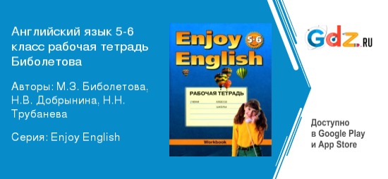 Английский язык — далеко не самый легкий предмет общеобразовательной школы, поэтому стоит обратиться к ГДЗ по английскому языку за 5-6 класс рабочая тетрадь Enjoy English Биболетова, если возникли трудности. Успеваемость ученика зависит от многих факторов: личных способностей, заинтересованности и методики преподавания. Грамотный подход к изучению дисциплины позволит развить у ребенка мотивацию и повысить уровень знаний.
