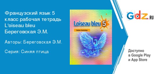 Французский язык в 5 классе несёт в себе огромный потенциал для развития и совершенствования. Благодаря французскому языку можно не только получить новые знания, но и расширить кругозор, улучшить память и внимательность. В этом поможет ГДЗ к рабочей тетради по французскому языку 5 класс L’oiseau bleu автор Береговская Э.М. Пособие полностью соответствует всем требованиям федерального государственного образовательного стандарта и школьной программы основного общего образования.