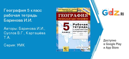 Изучать предмет дети начинают с пятого класса. Но, несмотря на скопившийся багаж ценных знаний из курса «окружающий мир», в новом учебном году просто не обойтись без помощи «ГДЗ по географии за 5 класс к рабочей тетради Бариновой». В решебнике даны не просто верные ответы к номерам из тетрадки, они сопровождаются: