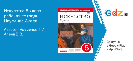 Чтобы всецело освоить перечисленные темы и заработать массу пятёрок за превосходную работу на уроке школьнику следует заручиться поддержкой надежного вспомогательного ресурса. Под данный критерий отлично подходит учебно-методический комплекс «ГДЗ по Искусству 5 класс Рабочая тетрадь авторы: Науменко Т.И., Алеев В.В.».