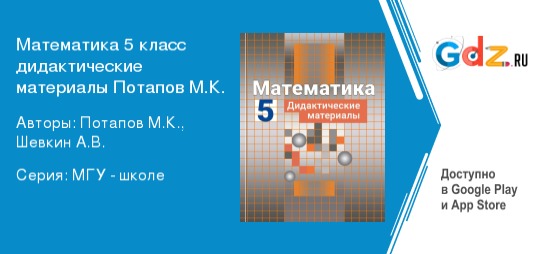 Зачем нужно использовать ГДЗ по математике за 5 класс дидактические материалы Потапов? В первую очередь для того, чтобы не растеряться при выполнении особенно сложных заданий. Данный предмет не просто так считается одним из самых сложных в учебной программе. Но навыки и знания, которые он дает являются метапредметными и фундаментальными в усвоении многих других наук: физики, химии, геометрии, алгебры. Поэтому стоит подходить к изучению во всеоружии.