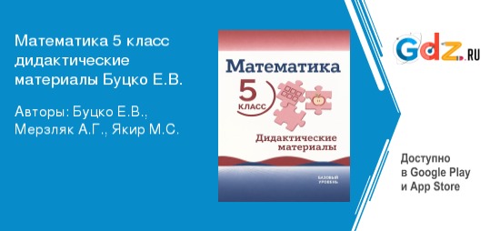 Математика играет ключевую роль в формировании умственных способностей школьников. Она развивает мышление, память, внимание и учит рассуждать логически. Использование ГДЗ к дидактическим материалам по математике 5 класс Буцко Е.А. является полезным помощником для учащихся, помогающему освоить математику на должном уровне. Пособие полностью соответствует всем требованиям федерального государственного образовательного стандарта основного общего образования.