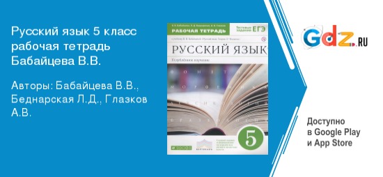 Изучение русского языка – процесс трудоемкий и достаточно сложный. Начиная с пятого года обучения, ученики приступают к освоению второго этапа курса школьной программы. Всего их три: начальный, основной, старший. Информация усложняется. Меняются цели, задачи и содержание обучения. Изучение этого предмета помогает детям красиво и грамотно излагать свои мысли, это вклад в будущую социальную адаптацию человека в современном мире. Отличное владение родной речью станет огромным плюсом при поступлении в ВУЗ, устройстве на работу. Помощником во время обучения станет сборник ГДЗ рабочая тетрадь по русскому языку за 5 класс Бабайцева В. В., Беднарская Л. Д., Глазков А. В., Углубленный уровень.