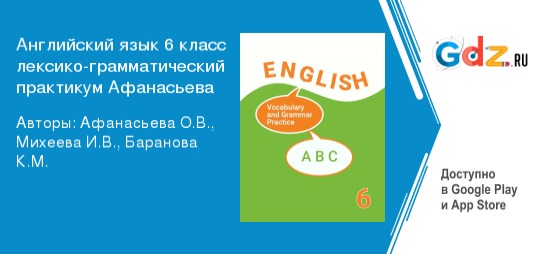 Обучение английскому языку в 6 классе сводится к изучению лексики, грамматики и фонетики. В результате обучения дети должны научиться читать по-английски, а также понимать иностранную речь на слух. Для того, чтобы дети не испытывали трудностей в изучении языка, необходимо использовать разные методы и приёмы. Одним из эффективных способов получения нужных знаний, это применение ГДЗ по английскому языку лексико-грамматический практикум 6 класс автор Афанасьева О.В. Пособие полностью соответствует всем требованиям федерального государственного образовательного стандарта основного общего образования.