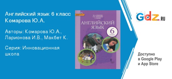 Онлайн-решебник по английскому языку для 6 класса Ю. А. Комаровой. Станет надежным помощником в подготовке домашних заданий для школьников и в их проверке для родителей и учителей. С ГДЗ вы легко сможете справляться с любым упражнением, заданным на дом, быстро готовиться к предстоящему уроку, подтянуть свои знания и понимание темы по предметы. Или проверять решения заданий шестиклассниками, чтобы быть полностью уверенными в их точности.