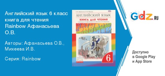 ГДЗ книга для чтения по английскому языку за 6 класс Афанасьева, Михеева выпущена издательством «Дрофа» в серии «Радужный английский» для обучения по интенсивной программе погружения в иностранный. Он полностью соответствует действующему общеобразовательному плану, создаёт преемственность в рамках 11-летней школы.