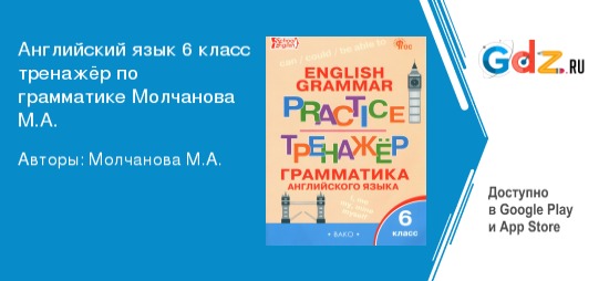 Английский язык в 6 классе предполагает интенсивное изучение грамматики, которое направлено на дальнейшее совершенствование коммуникативных компетенций учащихся. Для поддержки качественного усвоения правил английской грамматики активно используется специальный тренажёр, разработанный педагогом-практиком Марианной Алексеевной Молчановой. Использование ГДЗ к тренажеру по грамматике английского языка для 6 класса Молчановой М.А. несёт много положительного влияния на учебный процесс, предоставляя надёжный инструмент для улучшения грамматических навыков и общего уровня владения иностранным языком. Пособие полностью соответствует всем требованиям федерального государственного образовательного стандарта основного общего образования.