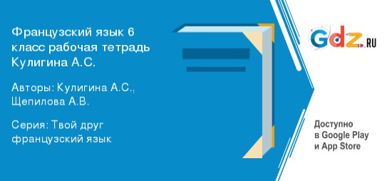 Изучение французского языка в 6 классе направлено на развитие коммуникативных навыков учащихся, расширение словарного запаса и повышение уровня владения грамматикой. В этом возрасте дети уже обладают определёнными знаниями и навыками, которые можно использовать для дальнейшего изучения языка. ГДЗ к рабочей тетради по французскому языку для 6 класса Кулигиной А. С. предоставляет учащимся возможность закрепить полученные знания и навыки, а также проверить свои ответы на задания. Пособие полностью соответствует всем требованиям федерального государственного образовательного стандарта основного общего образования.