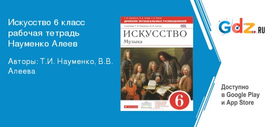 ГДЗ рабочая тетрадь по искусству за 6 класс Науменко, Алеева ФГОС позволит учащимся лучше усвоить теоретическую часть этого направления учебной деятельности. В музыкальной теории разобраться непросто, так что верные ответы и подробные комментарии определенно пригодятся детям. С ними каждый сможет выучить нотную грамоту, запомнить годы жизни композиторов и их произведения. Такая помощь позволит ребенку развиться в творческом плане, а также получать только положительные отметки на занятиях этой дисциплиной.