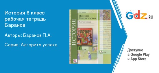 Продуктивное применение ГДЗ по истории за 6 класс рабочая тетрадь Баранов П.А.