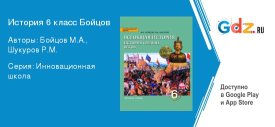 История – это один из любимых предметов учеников в 6 классе, помочь с ним могут ГДЗ по истории средних веков 6 класс Бойцов. Ведь со временем интенсивность нагрузки увеличивается, и школьники уже не так благосклонно относятся к дисциплине.