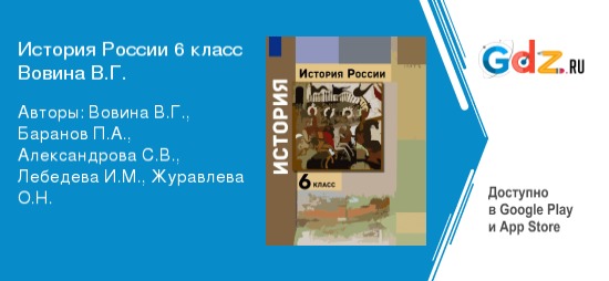 Достоинства ГДЗ по истории за 6 класс Авторы: Вовина В.Г., Баранов П.А., Александрова С.В., Лебедева И.М., Журавлева О.Н.