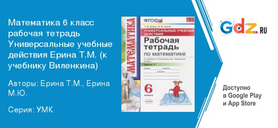 ГДЗ по математике за 6 класс рабочая тетрадь Универсальные учебные действия Ерина к учебнику Виленкина 1, 2 часть – это уникально пособие, разработанное специально для шестиклассников, занимающихся по соответствующему изданию. Здесь собраны правильные ответы к абсолютно всем упражнениям из основного пособия.