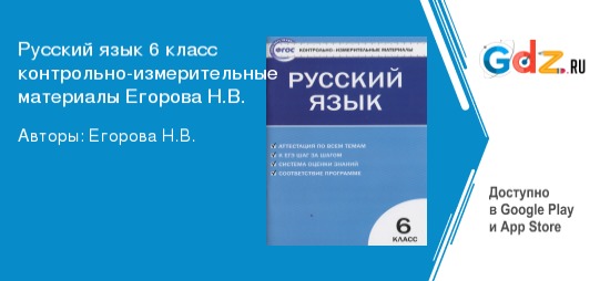 Кто испытывает трудности с гуманитарными дисциплинами, всегда может посетить наш замечательный портал, где он найдет уникальные ГДЗ по русскому языку за 6 класс контрольно-измерительные материалы Егорова. Да, вы не ослышались – трудны для понимания не только точные науки. Все ошибочно полагают, что больше времени надо уделять математике, физике, геометрии, так как для высокой успеваемости по ним нужно зубрить трудные и длинные формулы, а потом применять их, решая задачки различной степени сложности. Однако и другие дисциплины требуют такой же сосредоточенности, хорошей памяти и вдумчивости. В рус. яз., например, существует множество правил и законов, а также исключений к ним. Их тоже важно запоминать и применять при написании текстов и даже при живой речи, устной (это касается ударений). Поэтому никогда не стоит забывать про какой-то предмет, думая, что он слишком простой.