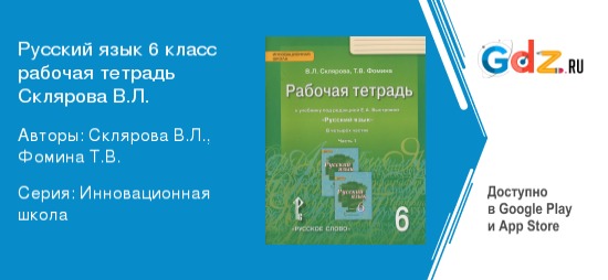 Особенности изучения предмета с гдз по русскому языку 6 класс рабочая тетрадь Склярова