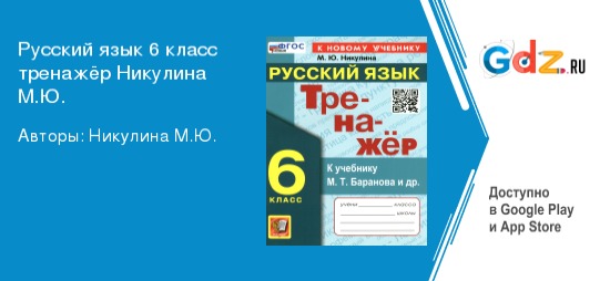 Обязательный курс ГДЗ тренажёр по русскому языку за 6 класс Автор: Никулина М.Ю.
