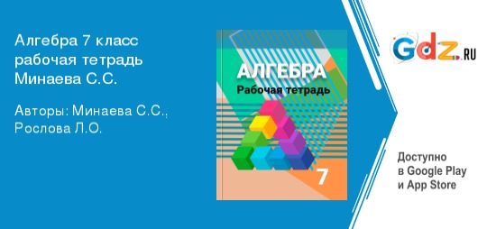 Пользуясь ГДЗ по алгебре для рабочей тетради за 7 класс (авторы: Минаева С. С., Рослова Л. О.), ученик не просто будет получать положительные отметки, он будет пользоваться уважением как со стороны учителей, так и своих одноклассников.