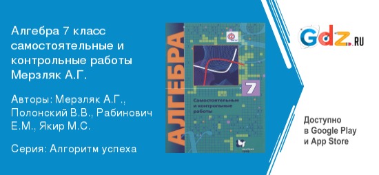 Школьная программа ГДЗ Самостоятельные и контрольные работы по алгебре за 7 класс Авторы: Мерзляк А.Г., Полонский В.В., Рабинович Е.М., Якир М.С. Углубленный уровень