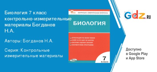 Контрольно - измерительные материалы (КИМ) Богданова Н.А. являются ценным дидактическим средством для организации образовательного процесса по биологии в 7 классе. Их использование направлено на формирование прочных знаний, развития интеллектуальных способностей и воспитания устойчивого интереса к предмету. ГДЗ к контрольным измерительным материалам по биологии 7 класс Богданова Н.А. выступает мощным вспомогательным инструментом, содействуя успешному овладению программой и достижению высоких результатов в обучении. Пособие полностью соответствует всем требованиям федерального образовательного стандарта основного общего образования.
