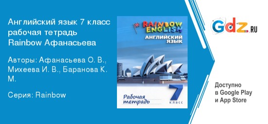 Хотите прогресса в обучении? Иностранный язык станет для вас любимым и интересным предметом, если воспользоваться полезным сборником ГДЗ для рабочей тетради Rainbow по английскому языку за 7 класс (Афанасьева, Михеева ФГОС). Это самый простой путь к отличным оценкам и пониманию рабочей программы.