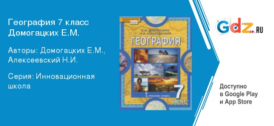 «ГДЗ по географии за 7 класс Домогацких Е. М., Домогацких Е. Е. (Русское слово)» облегчит восприятие этого увлекательного предмета, а также поможет каждому семикласснику:
