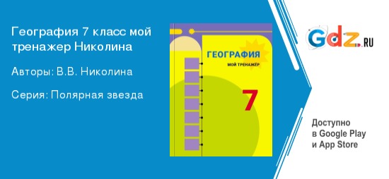 ГДЗ по географии мой тренажер 7 класс Николина – это сборник с правильными ответами, который призван помочь всем школьникам. Пособие включает в себя упражнения, соответствующие тем, что содержатся в главной книге. Таким образом, все задания в полной мере отвечают требованиям ФГОС и школьной программе.