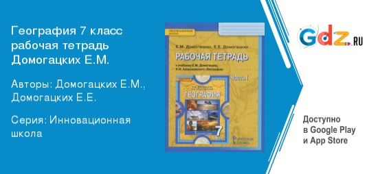 Онлайн-режим обеспечивает быстрый поиск номеров заданий. Пользоваться «ГДЗ к рабочей тетради по географии за 7 класс Домогацких Е. М., Домогацких Е. Е. (Русское слово)» можно в любое время суток и в любом месте, где имеется доступ к Интернету, как с компьютера, так и с любого мобильного устройства.