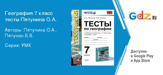 Школьный курс решебника Тесты по географии за 7 класс Авторы: Пятунина О.А., Пятунин Б.В.