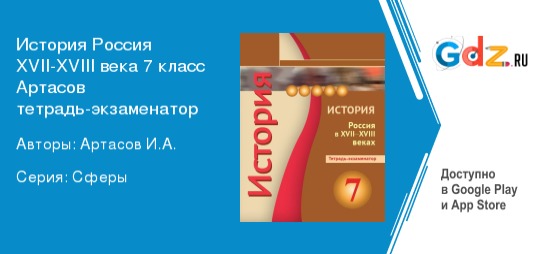 Состав и структура онлайн-решебника по истории Россия XVII-XVIII века 7 класс Артасов тетрадь-экзаменатор