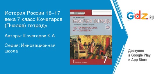 Что дает ГДЗ к рабочей тетради по истории России 7 класс Кочегаров