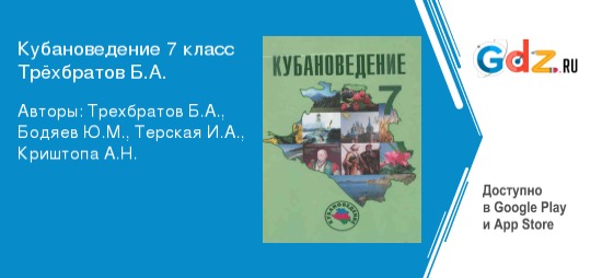 В процессе изучения Кубановедения семиклассник познакомится с историей, культурой и природой Краснодарского края, его традициями и обычаями. В процессе изучения этого предмета идёт и знакомство с историческими событиями, которые происходили в Краснодарском крае, а также с его памятниками, достопримечательностями. Семиклассник научится проводить экскурсии, посещать музеи, узнает о народных промыслах, быте и культуре народов, проживающих в нашем регионе. Учебник содержит занимательные факты, сведения, информацию, не только необходимую для формирования мировоззренческой позиции обучающегося, но и способствующую развитию его интеллектуальных способностей, познавательной активности, самостоятельности, формированию универсальных учебных действий. Материал учебника направлен на формирование представления о Кубани как отдельном регионе России, который является своеобразной географической витриной страны, об истории Кубани, о её освоении и заселении, а также на изучение истории края в историческое время. В учебнике содержатся сведения о природных условиях, населении, хозяйстве и культуре Кубани. Учебник имеет яркую краеведческую направленность, содержит много материала, связанного с историей, культурой и бытом народов, проживающих в крае. ГДЗ к учебнику по Кубановедению 7 класс Трёхбратова направлен на то, чтобы помочь семикласснику разобраться с самыми сложными вопросами, возникающими при изучении этого предмета. Он представляет собой полный сборник ответов на все задания по данной дисциплине, включая в себя подробное решение упражнений, которые дают возможность изучить, запомнить и повторить всю необходимую информацию. В этом сборнике изложены сведения о растительном и животном мире Кубани, её климате, рельефе и полезных ископаемых. Даны сведения об истории и этнографии края, а также о его городах и населённых пунктах. Использование этого решебника даёт возможность семикласснику быстро и эффективно повторить пройденный материал и подготовиться к предстоящим проверочным работам, а также поможет в решении сложных заданий. Ответы на вопросы, задания, размышление, решение задач и других заданий из учебника помогут закрепить и систематизировать полученные знания. Материал изложен доступно и понятно. С помощью готовых заданий можно находить и исправлять ошибки, уметь проверять свою работу, подготовиться к контрольной работе, освоить навыки по составлению рассказа на заданную тему, научиться составлять план и рассказ в соответствии с ним, научиться работать с дополнительной литературой, научиться анализировать текст, пользоваться справочной литературой, самостоятельно формулировать выводы. Этот решебник считается одним из самых востребованных, так как содержит в себе большое количество упражнений, которые направлены на закрепление полученных знаний. В нём не только прописаны все темы, но и представлены задания для проверки. Благодаря этому, ученик сможет не просто найти ответ на вопрос, а понять, как он был решён. Это позволит в дальнейшем избежать ошибок. С помощью решебника родители могут контролировать и помогать своему ребёнку в выполнении домашних работ.