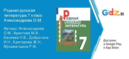 Особенности ГДЗ по родной русской литературе за 7 класс Авторы: Александрова О.М., Аристова М.А., Беляева Н.В., Добротина И.Н., Критарова Ж.Н., Мухаметшина Р.Ф.