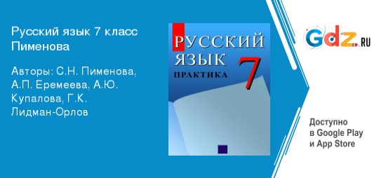 Русский – один из самых распространенных языков мира, многие иностранцы хотят его освоить, но не у всех получается, так как он является и одним из самых трудных для изучения. Поэтому, конечно, для гражданина России очень важно знать его хорошо. И цель состоит не только в том, чтобы уметь грамотно говорить, важно на должном уровне обращаться со словами, правильно расставляя ударения, согласовывая слова, умело выстраивая словесные конструкции и т. д. самое значимое здесь – научиться выражать свои мысли в полном объеме, ведь огромный запас лексем это позволяет, поэтому надо расширять и собственный лексикон. Поможет в выполнении такой сложной задачи ГДЗ по Русскому языку за 7 класс Пименова .
