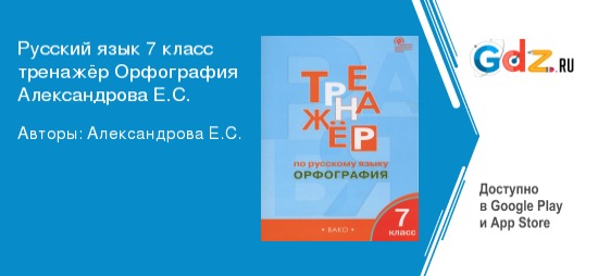 Русский язык является одним из самых наиболее сложных предметов. Не каждый семиклассник может усвоить все правила, которые предлагает грамматика. Для облегчения учебного процесса и был разработан решебник. ГДЗ по русскому языку 7 класс тренажёр по орфографии Александрова Е.С. поможет разобраться с трудностями. Пособие полностью соответствует всем требованиям федерального государственного образовательного стандарта основного общего образования.