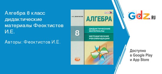 Если школьник желает освоить рабочую программу по данному предмету, то ему обязательно понадобится помощь «ГДЗ дидактические материалы по алгебре за 8 класс Феоктистов И. Е. Углубленный уровень (Мнемозина)»