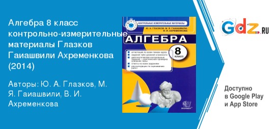 Как работать с ГДЗ по алгебре Контрольные измерительные материалы за 8 класс Глазков, Гаиашвили