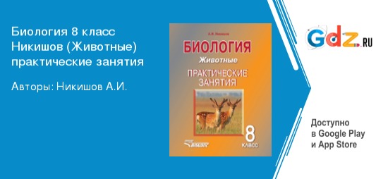 Изучение биологии в 8 классе требует от ученика более серьёзного, внимательного и вдумчивого подхода, а также понимание того, что каждый урок – это не просто повторение пройденного материала, а изучение совершенно нового, неизвестного ранее. ГДЗ по биологии 8 класс (животные) практические занятия автор Никишов А.И. являются отличным инструментом для проверки выполнения домашних и школьных заданий. Пособие полностью соответствует всем требованиям федерального государственного образовательного стандарта основного общего образования.