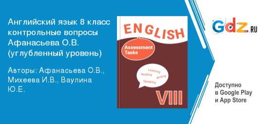 «ГДЗ по английскому языку 8 класс контрольные вопросы Афанасьева О. В., Михеева И. В. (Просвещение)» позволит юным лингвистам в полном объеме освоить теоретические знания и практические навыки в ходе изучения дисциплины: