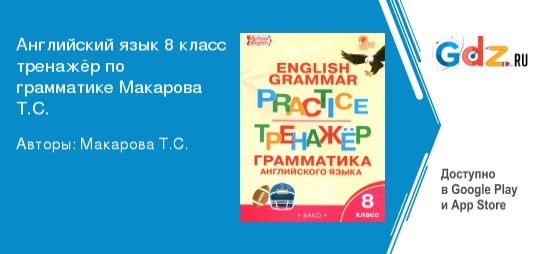 ГДЗ к тренажеру по грамматике английского языка Макаровой Т.С. служит дополнением к основным материалам учебной программы и значительно облегчает освоение грамматической структуры английского языка. Основное содержание ГДЗ заключается в следующем: